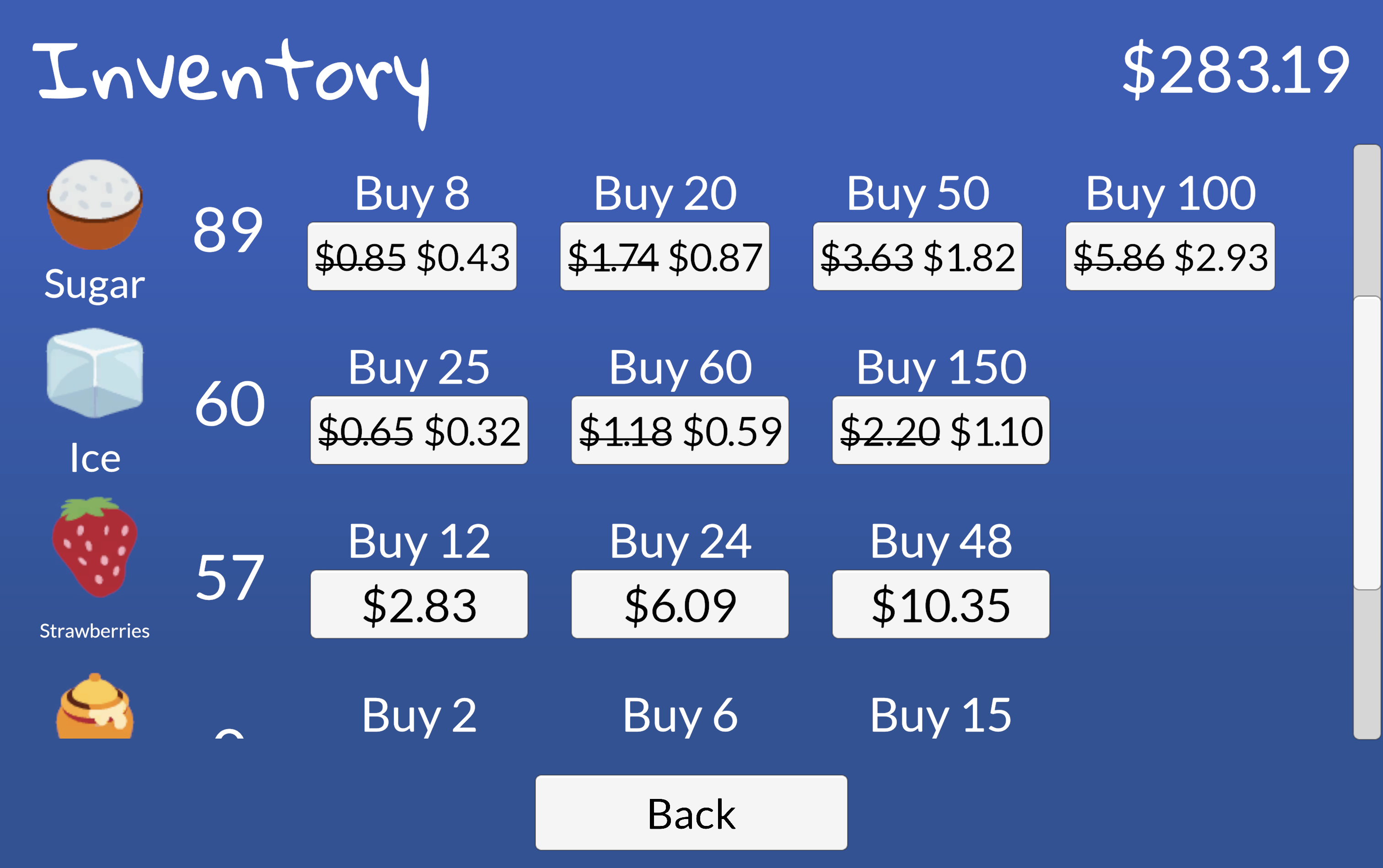 Buy ingredients, choose a recipe, and set the price.